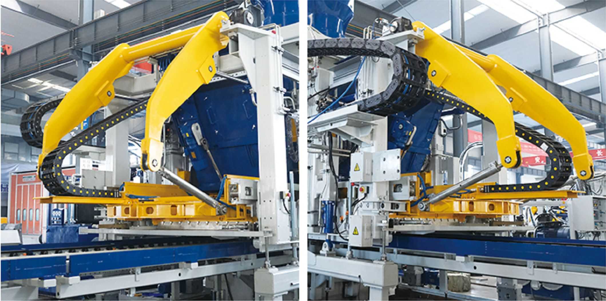L-adozzjoni ta 'distribuzzjoni ta' materjal tat-tip ta 'swing arm b'saħħtu, l-effiċjenza tat-tmigħ hija għolja; il-karozza tad-distribuzzjoni tal-materjal tadotta rota ta 'gwida ta' dijametru kbir, u l-binarju tal-karozza tal-materjal tadotta disinn ta 'pjanċa reżistenti għall-ilbies li jista' jinbidel, li għandu stabbiltà qawwija ta 'distribuzzjoni tal-materjal u manutenzjoni konvenjenti; il-pjattaforma tad-distribuzzjoni tal-materjal tadotta disinn ta 'pjanċa reżistenti għall-ilbies sostitwibbli għal manutenzjoni faċli. Il-parti tat-tmigħ hija ddisinjata biex tinfetaħ u tissakkar b'serratura idrawlika għal manutenzjoni u tindif faċli.